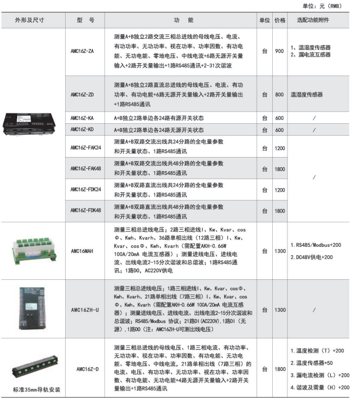 具體型號:AMC16B-3E32. AMC16系列數據中心能耗監(jiān)測裝置